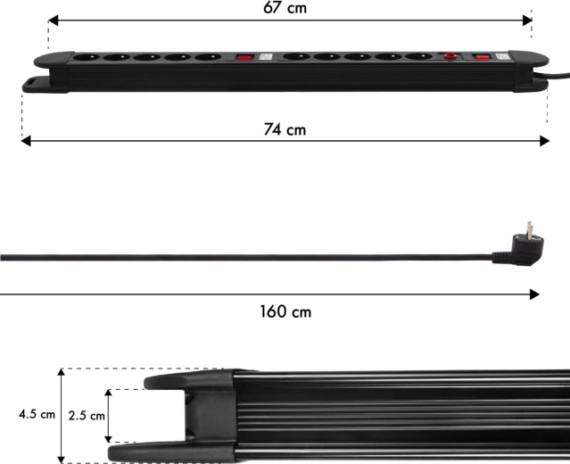 Dankzij de kinderbeveiliging zijn de stopcontacten ook veilig in gezinnen. De compacte, langwerpige behuizing met voorgeboorde gaten maakt eenvoudige wandmontage onder een bureau of aan de muur mogelijk. Maximaal vermogen 3680 W en een kabel van 1,5 m zorgen voor betrouwbare werking thuis, op kantoor en in de werkplaats.