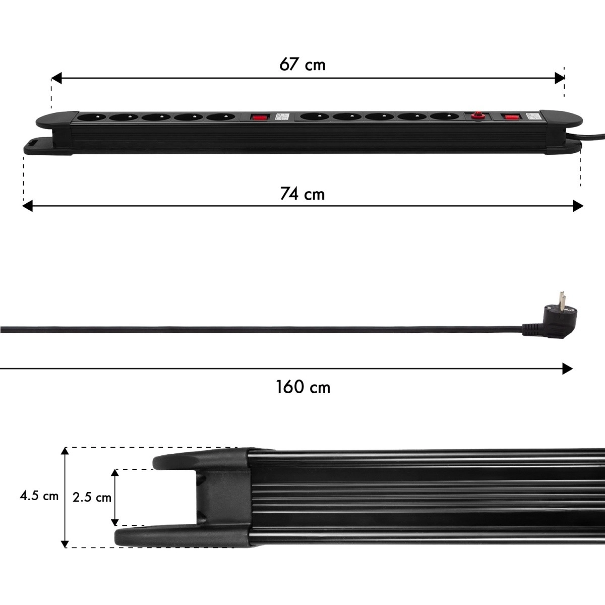 Praktische MACLEAN ENERGY‑verlengdoos voor het voeden van tot tien apparaten tegelijk, met twee onafhankelijke schakelaars voor twee groepen van vijf stopcontacten, een automatische zekering tegen overbelasting en een kinderbeveiliging voor maximale veiligheid. Met een maximale belasting van 3680 W, een kabel van 1,5 m en de mogelijkheid tot wandmontage is hij ideaal voor kantoor, thuis en werkplaats.