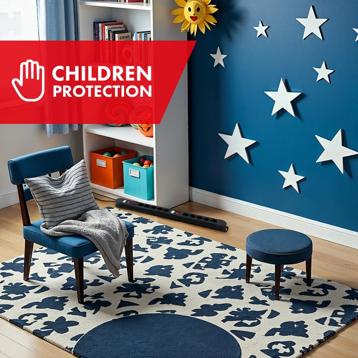 De ingebouwde automatische zekering beschermt tegen overbelasting en kortsluiting, terwijl de kinderbeveiliging voorkomt dat er vreemde voorwerpen in de stopcontacten worden gestoken.