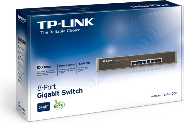 De innovatieve technologie van de TL-SG1008 vermindert het energieverbruik tot 60% en past automatisch het verbruik aan op basis van de verbindingsstatus en kabel lengte.