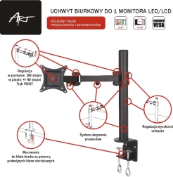 De ART L-01 is een ideale keuze voor een ergonomische werkplek. Dankzij de ruime verstelmogelijkheden pas je eenvoudig hoogte, kanteling en rotatie van het scherm aan om oog- en nekvermoeidheid te verminderen en de productiviteit te verhogen. De robuuste constructie waarborgt stabiliteit, zelfs bij frequent verstellen.