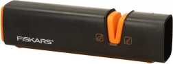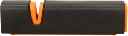 Houd je keukenmessen in topconditie met de universele FISKARS messenslijper. Het apparaat is ontworpen voor eenvoudig en veilig gebruik, zonder stroomvoorziening. De keramische stenen geven de snede een gladde afwerking en langdurige scherpte, terwijl het geïntegreerde mechanisme bij elke haal de juiste slijphoek waarborgt.