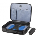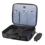 Je apparaat wordt beschermd door een meerlagig systeem: het Air Cell System voor schokabsorptie, het Anti‑Shock System met een dubbel verstevigd frame en het X‑Holding System met elastische banden die de laptop fixeren tegen trillingen. Een trolleyband voor eenvoudige bevestiging aan een uitschuifbaar kofferhandvat ontbreekt niet.