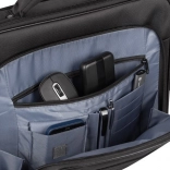 De geïntegreerde band laat je de tas over het telescopische handvat van een koffer schuiven, waardoor verplaatsingen op de luchthaven of op kantoor comfortabel en veilig zijn.