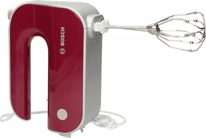 Elegante Bosch handmixer in bordeaux voor veeleisende gebruikers. Deze mixer blinkt uit door een fluisterstille en lichte werking en een krachtige motor die uitstekende resultaten levert.