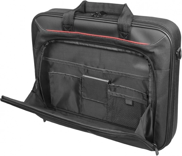 De praktische en stijlvolle laptoptas 15,6″ is ideaal voor werk en reizen. De verstevigde constructie en hoogwaardige textiele stof beschermen het apparaat tegen stoten, terwijl de interne riem de laptop veilig op zijn plaats houdt. De voororganizer maakt het eenvoudig om kleine items zoals laders, kabels, pennen of documenten op te bergen.