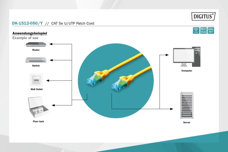 Deze kwalitatieve patchkabel is ideaal voor gangbare datanetwerken, thuisrouters, switches en andere netwerkapparatuur. Dankzij de lengte van 5 m verbindt u netwerkelementen comfortabel over langere afstanden zonder verlenging.