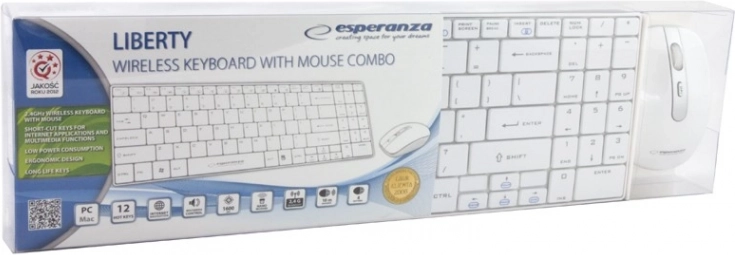De stijlvolle LIBERTY-set combineert een slank toetsenbord met lage toetsaanslag en een gladde, glanzende muis. Dankzij de 2,4 GHz draadloze technologie blijft je bureau kabelvrij en krijg je een stabiele verbinding voor pc en laptop.