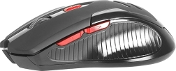 De ergonomisch gevormde behuizing met een antislip rubberen oppervlakte zorgt voor een comfortabele grip, zelfs bij langdurig gebruik. De moderne zwart‑rode afwerking met scherpe lijnen benadrukt de dynamische look en past perfect bij je setup.