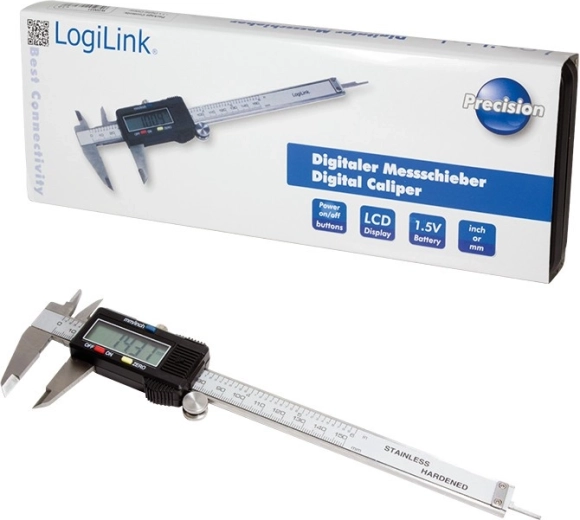 De digitale schuifmaat is een betrouwbaar instrument voor precisiemetingen met een bereik van 0–150 mm (0–6"). Dankzij het overzichtelijke LCD-display lees je de gemeten waarden eenvoudig af en schakel je met één knop tussen metrische en imperiale eenheden. De laatste meting blijft opgeslagen, ook na het uitschakelen van het apparaat.
