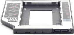 De HDD frame adapter 5,25'' naar 2,5'' Slim is ontworpen voor de installatie van een extra 2,5'' SATA-schijf in de 5,25'' bay van uw notebook. Met deze adapter kunt u eenvoudig de opslagcapaciteit van uw apparaat vergroten, zonder dat u stuurprogramma's hoeft te installeren.