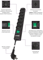 Met de overspanningsbeveiliging Ever Optima zorgt u voor de veiligheid van uw huishoudelijke apparaten, zoals desktop- en laptopcomputers, randapparatuur en audiovisuele apparatuur.