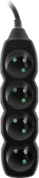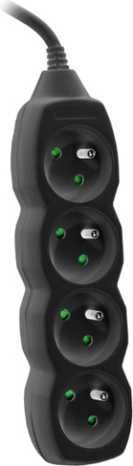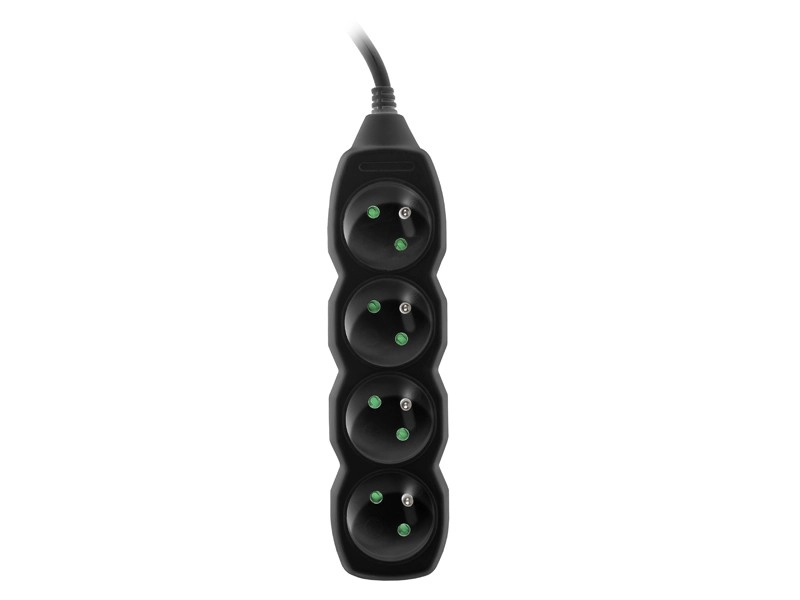 PowerWatch-kabel 3 m zwart (4 stopcontacten) De stekkerdoos heeft: een mechanisch vergrendelingssysteem dat kinderen beschermt tegen het risico op een elektrische schok bij contact met de fasedraad, en een hoogwaardig netsnoer conform VDE-normen.