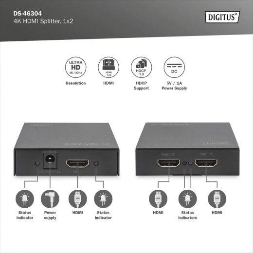 Met een spanning van 5V/1A is het eenvoudig te voeden en dankzij LED-statusindicatoren hebt u altijd inzicht in de verbindingen. De splitter is ook uitgerust met HDCP-repeatermodus, wat zorgt voor hogere overdrachtsbeveiliging.
