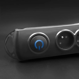 De verlichte, ronde schakelaar laat je met één druk alle aangesloten apparaten in- of uitschakelen. Je ziet in één oogopslag wanneer de stekkerdoos onder spanning staat.