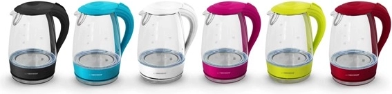 Elegante waterkoker met LED-verlichting met een inhoud van 1,7 liter. Deze draadloze glazen waterkoker valt op door zijn tijdloze design en prachtige blauwe verlichting van kokend water, wat hem een geweldige aanvulling maakt voor elke keuken.