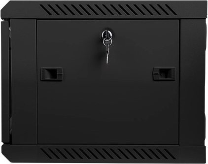 De kast is uitgerust met een afsluitbare glazen deur die uw apparatuur beschermt tegen onbevoegde toegang.