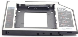 Schuif de 12,7 mm hoge adapter in de bay nadat je het dvd-station hebt verwijderd. Het toevoegen van de schijf duurt slechts enkele minuten en kan zonder speciaal gereedschap.