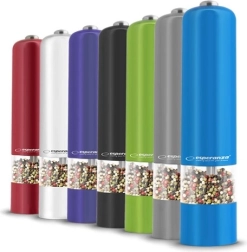 Praktische elektrische peper- en zoutmolen MALABAR in een elegante grijze kleur maakt dagelijks koken makkelijker. Met één druk op de knop maal je snel en precies de kruiden tot de gewenste grofheid. Past perfect in elke moderne keuken en sluit dankzij het stijlvolle design naadloos aan bij jouw interieur.