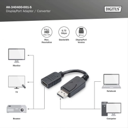 Deze korte DisplayPort (DP) naar HDMI type A adapter is ideaal om een laptop of pc aan te sluiten op een monitor, projector of tv met HDMI. Dankzij de vergrendeling op de DisplayPort-connector zit hij stevig in de poort en zorgt hij voor een stabiele verbinding zonder ongewenst losraken.