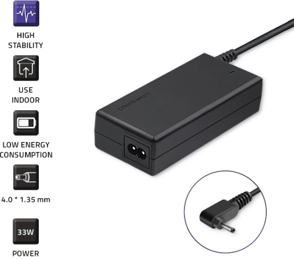 Betrouwbare netadapter voor ASUS-laptops met een vermogen van 33 W, spanning 19 V en stroom 1,75 A, met de nauwkeurige connector 4,0 × 1,35 mm. Ideaal als hoofd- én reservelader voor thuis, op kantoor en onderweg. Kwalitatieve afwerking en geïntegreerde beveiligingen zorgen voor een stabiele en efficiënte voeding van je laptop.