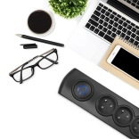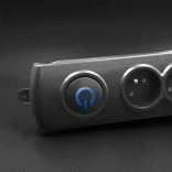 De verlichte schakelaar laat je alle apparaten direct loskoppelen zonder te bukken – ideaal op de vloer bij het bureau of de tv-opstelling.
