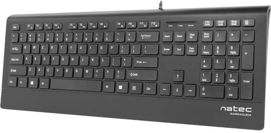 Natec Barracuda Slim is ontworpen voor maximaal comfort en duurzaamheid. Het toetsenbord heeft een slank profiel dat het in de Slim-categorie plaatst. De platte en zeer stille toetsen bieden werkcomfort vergelijkbaar met een laptoptoetsenbord. Het onderste deel van de behuizing is verlengd voor polssteun, wat het werken nog comfortabeler maakt.