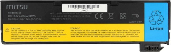 Zoek je betrouwbaarheid en prestaties voor je laptop? De MITSU batterij biedt een stabiele capaciteit van 4400 mAh, betrouwbare werking en is ontworpen als een exacte vervanging voor de modellen Lenovo ThinkPad T440, X240 en aanverwante varianten. Dankzij zorgvuldig geselecteerde klasse A cellen kun je rekenen op een langzamere capaciteitsafname en consistente prestaties, zelfs bij dagelijks gebruik.