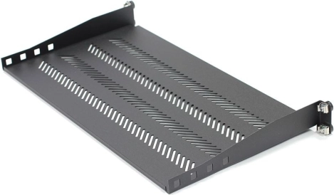 Deze zwarte 19" racklegplank (483 × 250 mm) is ontworpen voor montage in telecommunicatie- en netwerkkasten. Maakt het eenvoudig om kleinere desktopapparaten, accessoires of documentatie zonder eigen rackbeugels op te bergen. Het geperforeerde ontwerp ondersteunt optimale ventilatie en helpt een stabiele temperatuur in de kast te behouden.
