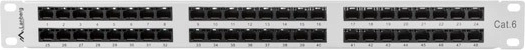 Patchpaneel is uitgerust met 48 ongeaarde RJ-45 poorten categorie 6. Het gebruik van IDC/LSA-aansluitingen zorgt voor eenvoudige en snelle montage. Versterkte plank samen met houders biedt eenvoudige kabelorganisatie en montage stabiliteit.