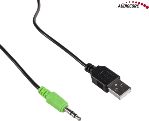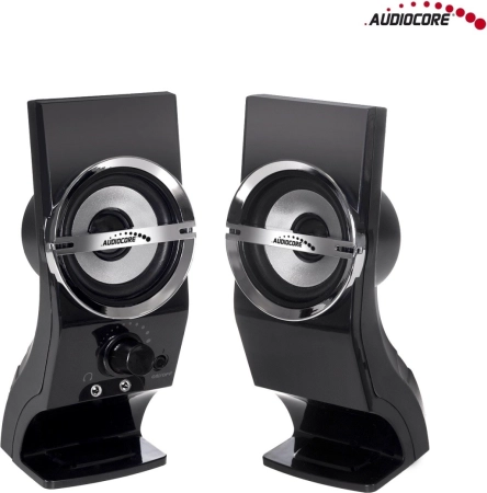 Compacte stereoluidsprekers AUDIOCORE AC805 met een totaal vermogen van 6 W bieden een helder en natuurlijk geluid voor laptops en desktopcomputers. Voeding via USB en aansluiting via 3,5mm jack zorgen voor eenvoudig gebruik. Elegant en duurzaam ontwerp in het zwart, perfect voor een modern bureau.