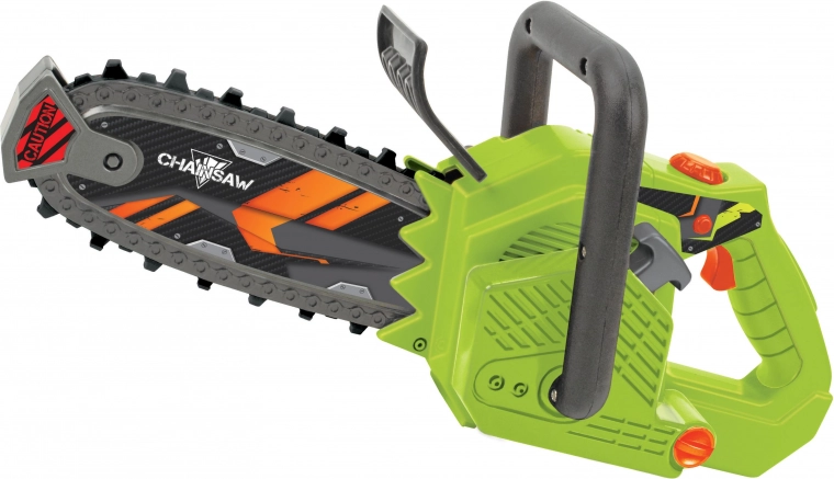 Deze Tuff Tools kinderkettingzaag is ideaal voor kinderen die graag doen alsof ze monteur of houthakker zijn. Na het indrukken van de zijknop “start” de zaag en de trekker activeert zowel de beweging van de ketting als de overtuigende zaaggeluiden, wat het spel extra echt maakt.