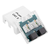Deze wandnetwerkdoos is ontworpen voor efficiënt gebruik in gestructureerde bekabelingsnetwerken op afnamepunten. Bevat twee niet-afgeschermde RJ-45-poorten van categorie 5e.