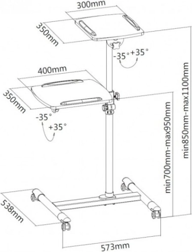 Stijlvolle en mobiele projectortafel met twee planken, ideaal voor uw presentaties. Biedt een groot werkoppervlak en eenvoudige hoogteverstelling.