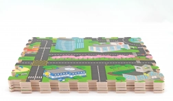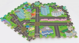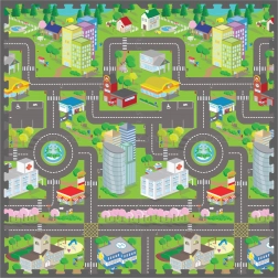 Deze foam mat – puzzel met stadsmotief verandert de kamer in een speelse en veilige omgeving. Dankzij de zachte EVA‑foam dempt hij schokken, isoleert hij kou van de vloer en biedt hij kinderen een comfortabele plek om te kruipen, zitten en de eerste stapjes te zetten.