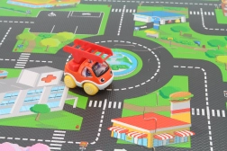 Vier grote blokken van 60 × 60 cm zijn eenvoudig te leggen tot een geheel van 118 × 118 cm. Het oppervlak kan eenvoudig worden afgenomen of afgespoeld, waardoor schoonhouden kinderspel is. Ideaal voor dagelijks spelen thuis en in de kinderopvang.