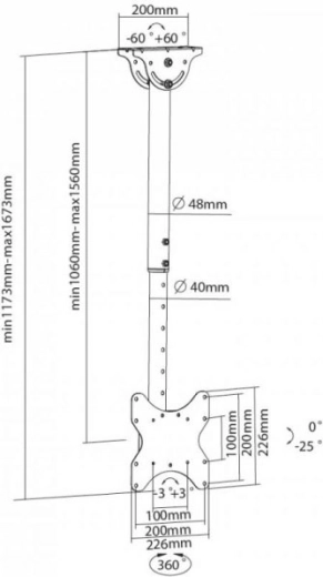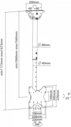 Plafondbeugel voor LCD/LED 23-42 inch 50 kg maakt het mogelijk om uw scherm of tv veilig aan het plafond te monteren. Geniet van maximale flexibiliteit dankzij de verstelbare lengte en kantelhoek.
