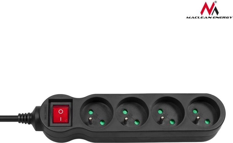 Stekkerdoos, geaard, 4 stopcontacten, met schakelaar, zwart, 5 m, Maclean Energy MCE182 2300W