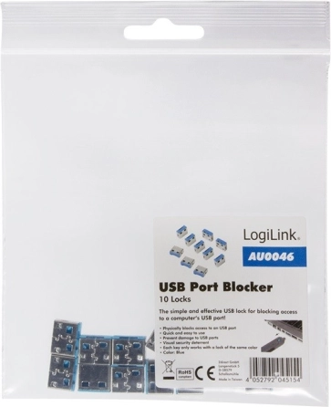 Praktische set voor de beveiliging van IT-werkplekken: USB-poortblokkering zonder gebruik van een sleutel in een verpakking van 10 stuks. Blokkeert eenvoudig en snel fysiek de toegang tot USB-poorten, beschermt tegen beschadiging en werkt als een visueel afschrikmiddel. Elk element is alleen compatibel met een slot in dezelfde kleur, wat de veiligheid en overzichtelijkheid verhoogt.