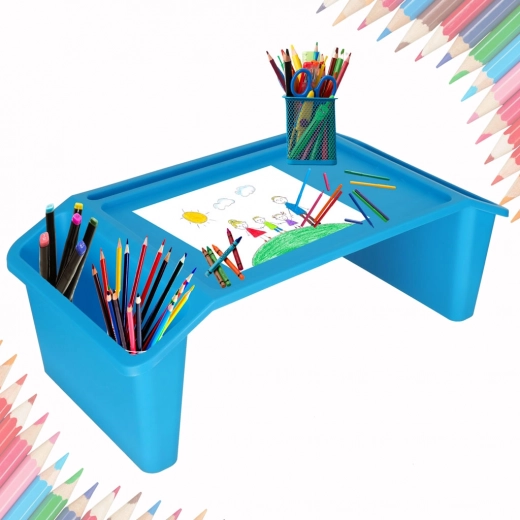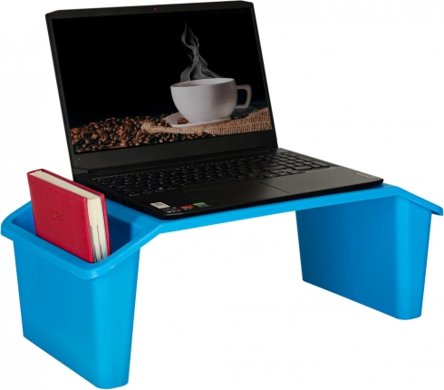 Geniet van comfort bij werken en ontspannen, overal in huis. Dit blauwe draagbare schoottafeltje biedt een stabiel en vlak oppervlak voor laptop, boeken of tablet, terwijl de zijvakken kabels, pennen, oortjes en notities netjes geordend houden. Ideaal voor op de bank, in bed en voor knutselen door kinderen.