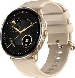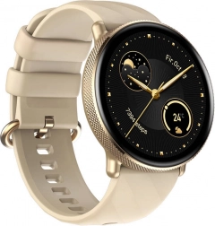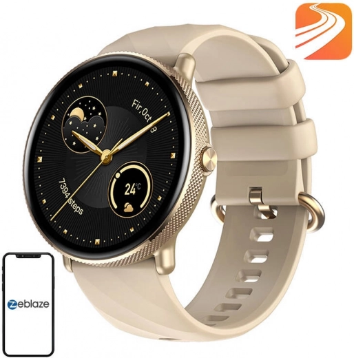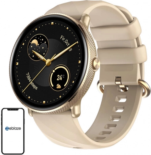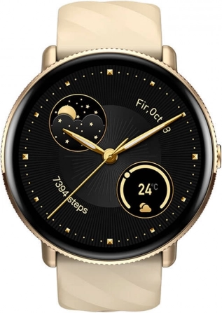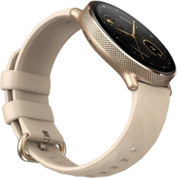 De gouden metalen behuizing en de beige band geven het horloge een moderne look en stijl. Dankzij de touch-interface is navigeren eenvoudig.