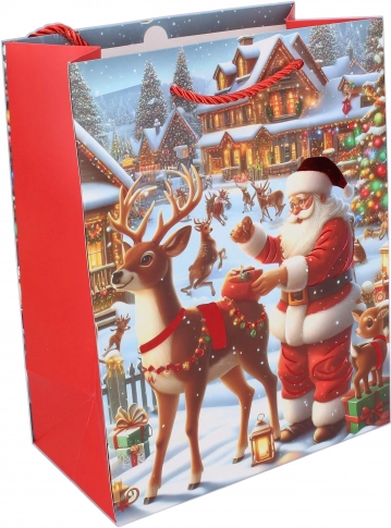 Stijlvolle cadeautas in maat L met afmetingen 32 × 41,5 × 12 cm, ideaal voor het inpakken van grotere cadeaus. Biedt een kerstmotief, stevige uitvoering en gemakkelijk dragen. Verkrijgbaar in 4 varianten voor de perfecte feestelijke sfeer.
