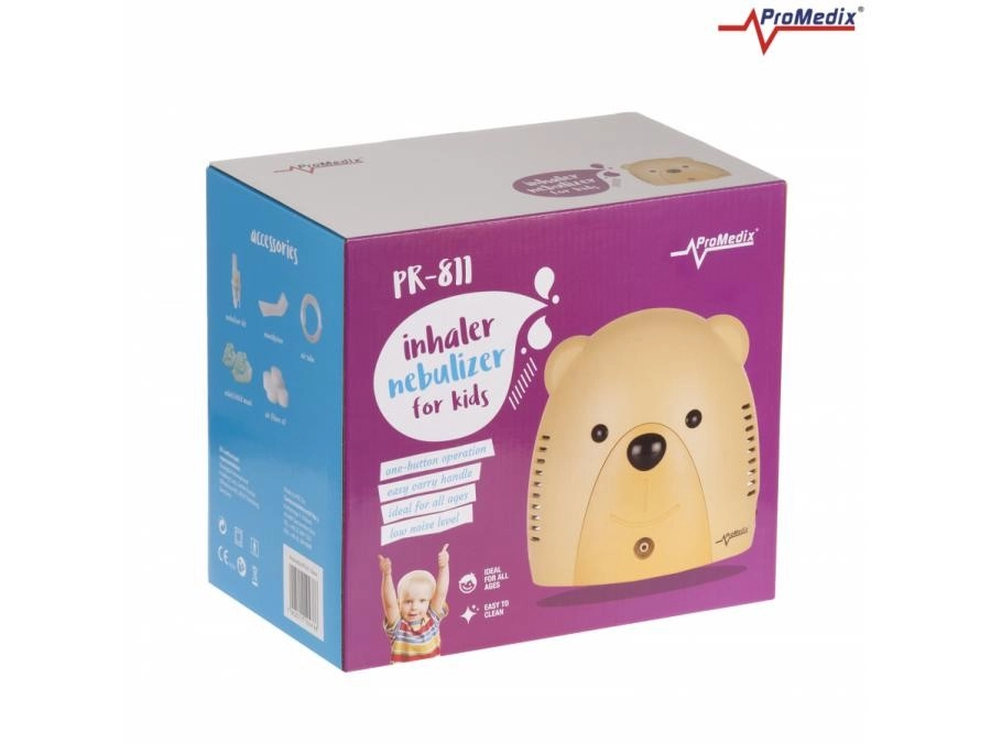 De Promedix inhalator/nebulisator met zuigercompressor is ideaal voor thuisbehandeling bij zowel kinderen als volwassenen. Dankzij het beerdesign wordt het inhalatieproces voor kinderen prettiger. Voordelen: