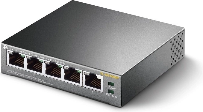 De TP-Link TL-SG1005P is een betrouwbare gigabit desktop switch die de voeding en aansluiting van IP‑camera’s, VoIP‑telefoons en access points vereenvoudigt. Dankzij vier PoE‑poorten verzend je data en voeding via één ethernetkabel, wat tijd en installatiekosten bespaart.