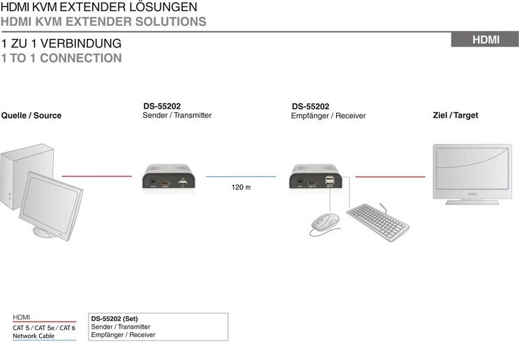 Vergroot uw mogelijkheden met deze HDMI KVM-extender van het merk Digitus, die een unieke optie biedt voor het uitbreiden van HDMI-signaal tot 120 m via een netwerkkabel (CAT 5, 5e, 6). Dit kan ook worden bereikt via bestaande netwerkinfrastructuur via IP.