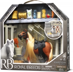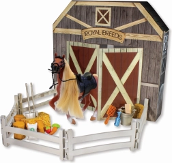 Deze set bevat een paard van Royal Breeds van 17 cm met interactieve elementen die elke kind aantrekken. De openende achterkant van de verpakking vergroot de speelmogelijkheden en transformeert in stallen: