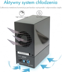 Eenvoudige schijfvervanging zonder complexe demontage en een 60mm ventilator voor stabiele temperaturen en een langere levensduur van de HDD.