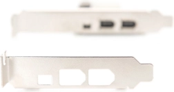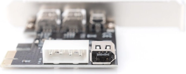 Twee externe aansluitingen maken directe aansluiting van randapparatuur mogelijk, terwijl de interne connector kan worden gebruikt voor het frontpaneel of interne FireWire-apparaten. De geïntegreerde 4‑pins voedingsaansluiting levert extra vermogen aan de poorten voor energie-intensieve randapparatuur.