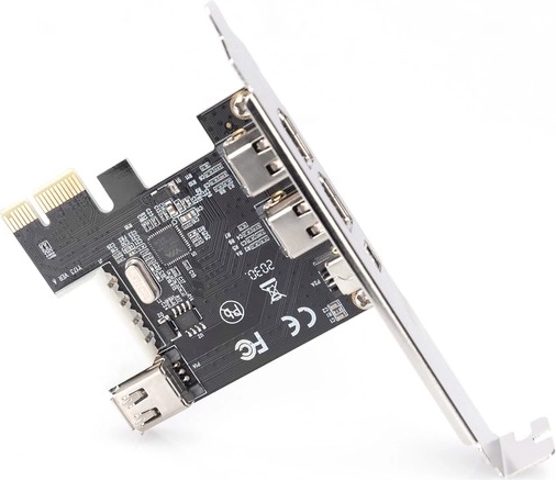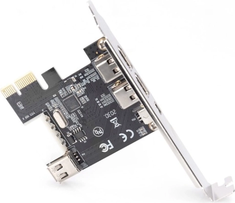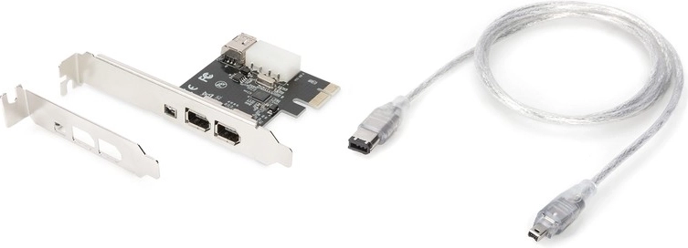 - PCIe FireWire-controller, standaard en low-profile afdekplaat