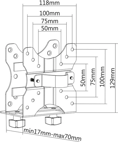 Het kan ook aan de onderkant van een werkblad of ander meubel worden bevestigd. Deze bevestiging is geschikt voor minicomputers met een dikte van 17 tot 70 mm en een gewicht tot 5 kg.